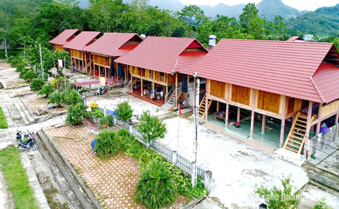 Nhà sàn thôn Bó Củng, xã Kim Bình được huyện hỗ trợ xây mới, tạo cảnh quan cho Khu di tích lịch sử Quốc gia đặc biệt Kim Bình.