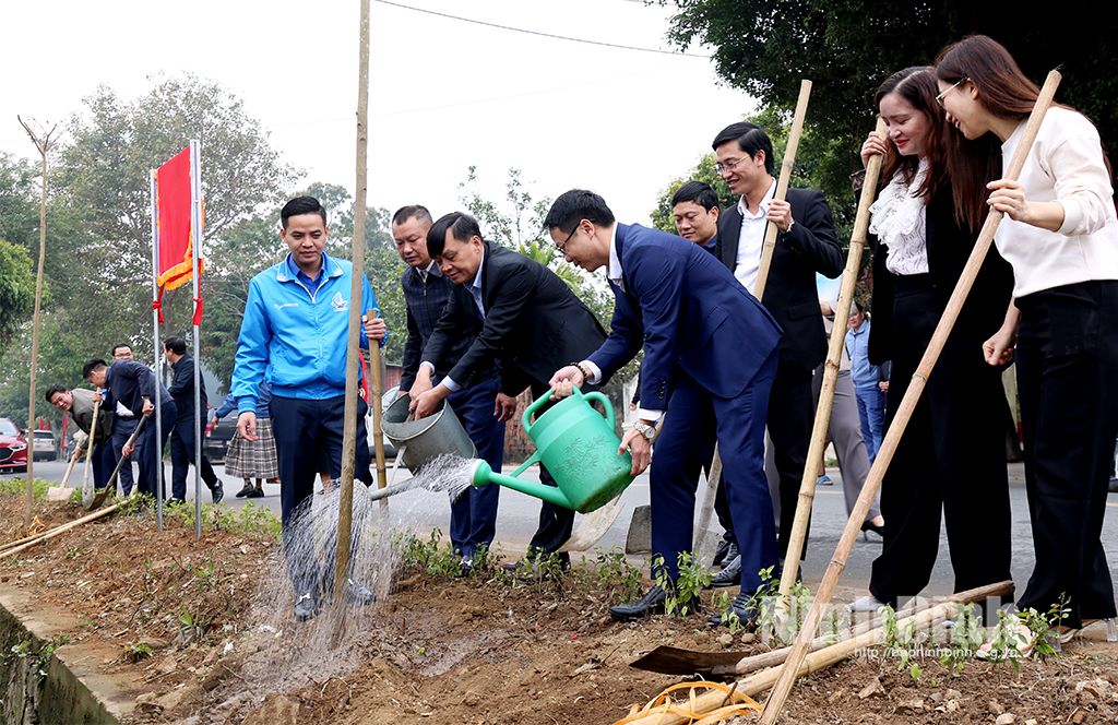 Các đại biểu đã thực hiện nghi thức trồng cây đầu xuân tại 3 tuyến đường: Khu Trường mầm non Vân Thành đi Giáo xứ Quảng Phúc; tuyến đường từ sân vận động Trung tâm đến Trường Mầm non, trường Tiểu học; trục đường 480B kéo dài qua xóm Thị, xóm Ngoài, xóm 3.