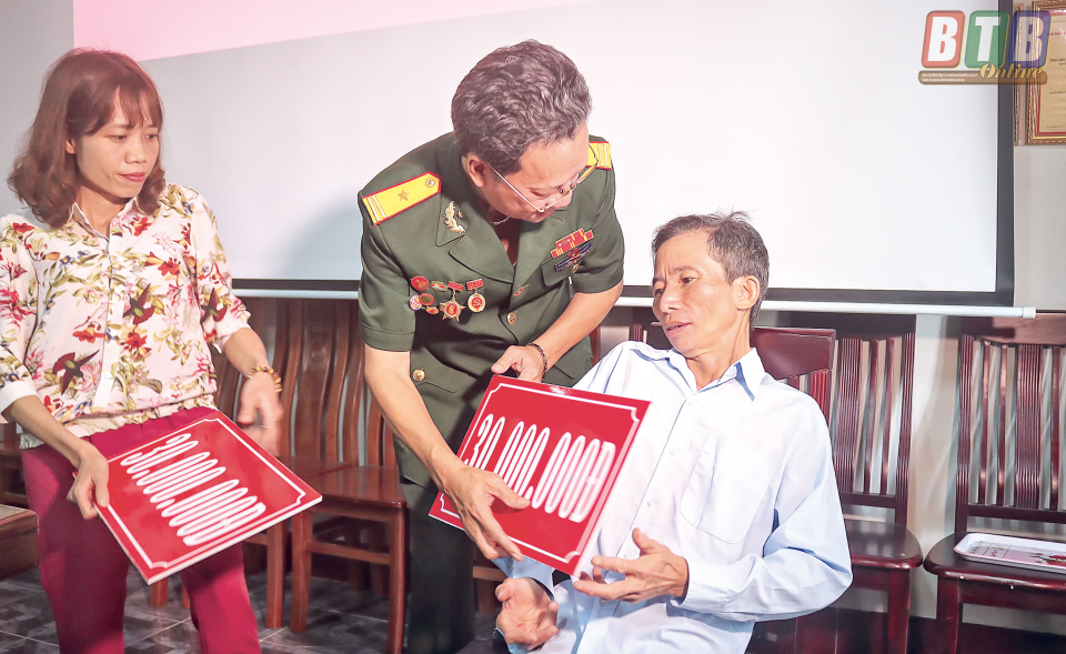 Còn ông Bùi Văn Hảo ở xã An Vinh (Quỳnh Phụ), dù bị khuyết tật vận động nặng song vẫn một mình lên nhận hỗ trợ. Ông Hảo cho biết, với nhiều gia đình khác 30 triệu đồng có thể không phải là số tiền lớn song với gia đình ông thì đó là cả niềm mơ ước. Được hỗ trợ 30 triệu đồng sẽ giúp sức cho gia đình ông rất nhiều trong việc sửa chữa ngôi nhà đã xuống cấp. Dù điều kiện sức khỏe không cho phép song ông vẫn muốn trực tiếp lên đón nhận sự hỗ trợ này. Ông rất cảm kích trước sự quan tâm, giúp đỡ của các đơn vị tổ chức chương trình “Trái tim nhân ái” và nhà tài trợ.