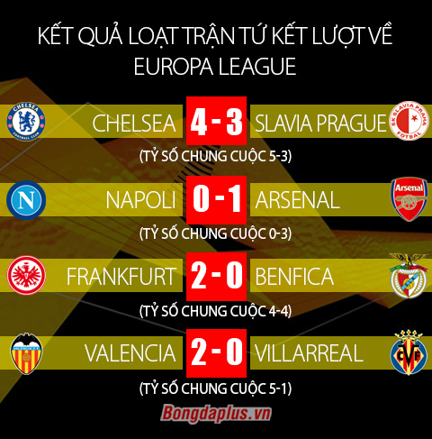 Chung cuộc, Arsenal thắng 1-0 ở trận lượt về và 3-0 sau 2 lượt trận, qua đó giành quyền vào bán kết. Đối thủ tiếp theo của Arsenal sẽ là Valencia, đội đã vượt qua Villarreal với tổng tỷ số 5-1.