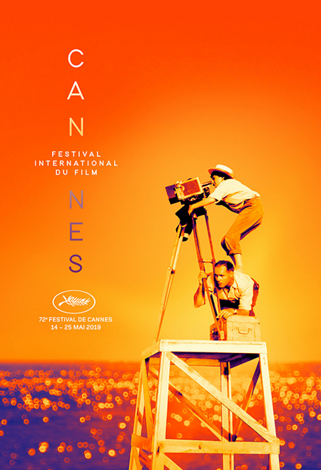 Poster của LHP Cannes 2019 tôn vinh Agnès Varda - nữ đạo diễn huyền thoại Pháp, qua đời cuối tháng 3. Trong ảnh, bà đứng trên vai một kỹ thuật viên, điều chỉnh máy quay trên trường quay phim đầu tay - "La Pointe Courte".