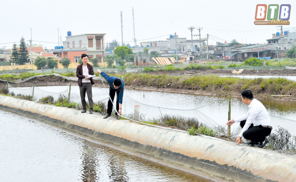 Đo đạc, kiểm đếm tại khu nuôi trồng hải sản xã Nam Cường (Tiền Hải).