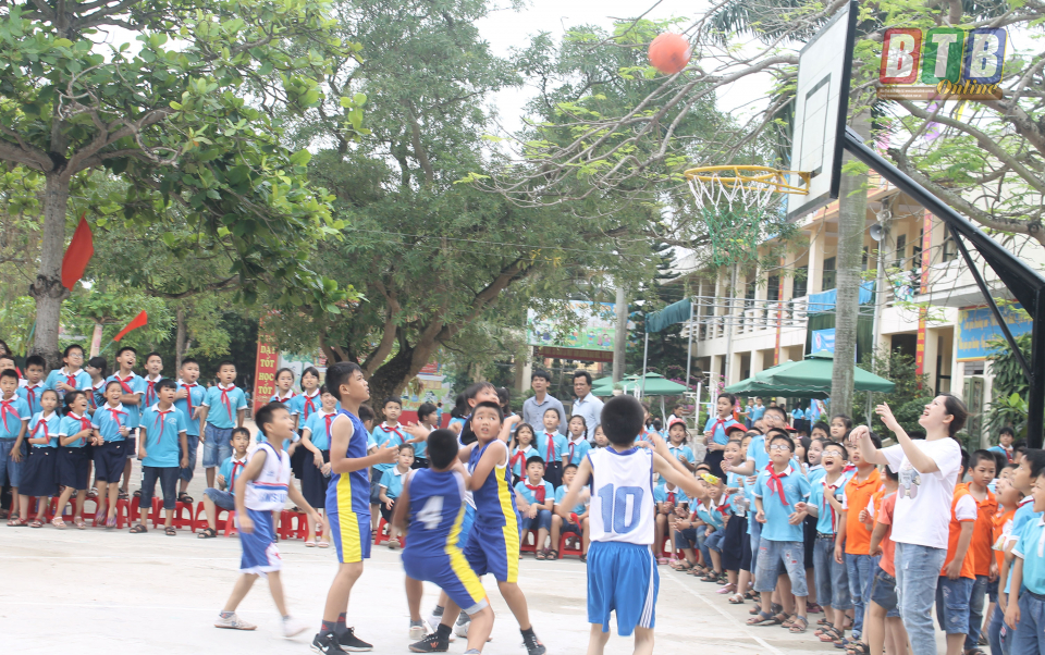 Trận đấu giữa đội tuyển bóng rổ cụm Trường Tiểu học Minh Lãng và cụm Trường Tiểu học thị trấn.