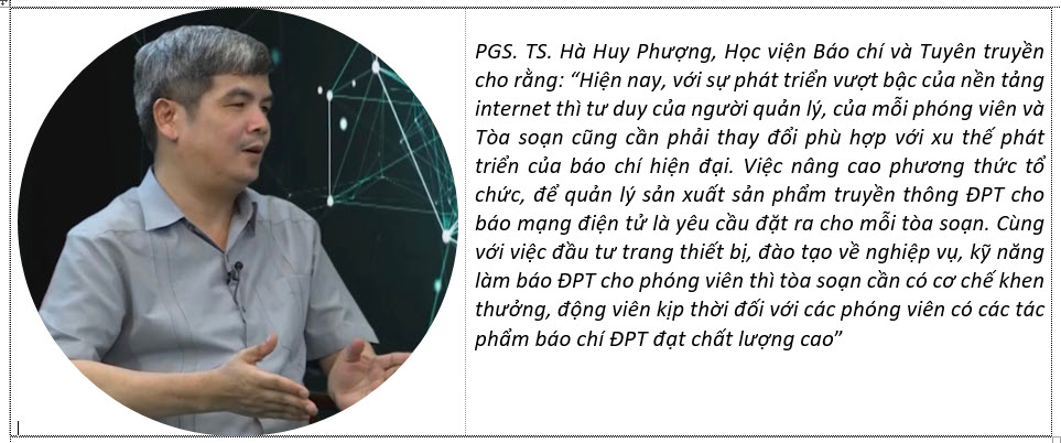 Nhà báo Nguyễn Hình cho biết: Để thực hiện được tác phẩm báo chí ĐPT mất rất nhiều công sức, thời gian đòi hỏi sự nỗ lực rất lớn của tác giả hoặc nhóm tác giả không chỉ đầu tư trí tuệ, công sức cho phần nội dung mà phải am hiểu về công nghệ, thậm chí tác giả cùng một lúc phải thực hiện nhiều kỹ năng như viết, chụp ảnh, quay phim… Mặc dù thời gian qua, bản thân tôi cũng như các phóng viên Báo Thái Bình đã được tham dự các lớp tập huấn do Hội Nhà báo Thái Bình phối hợp với Trung tâm Bồi dưỡng nghiệp vụ Báo chí, Hội Nhà báo Việt Nam tổ chức, tuy nhiên chưa nhiều. Trước sự phát triển của báo chí ĐPT, những người làm báo địa phương cần không ngừng nỗ lực trao dồi kiến thức để bắt kịp xu thế.