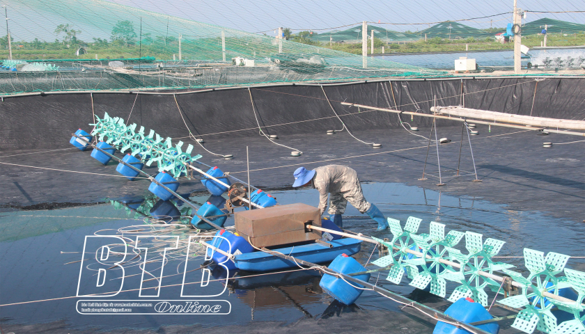 Nuôi tôm theo hướng công nghệ cao tại Thái Bình.