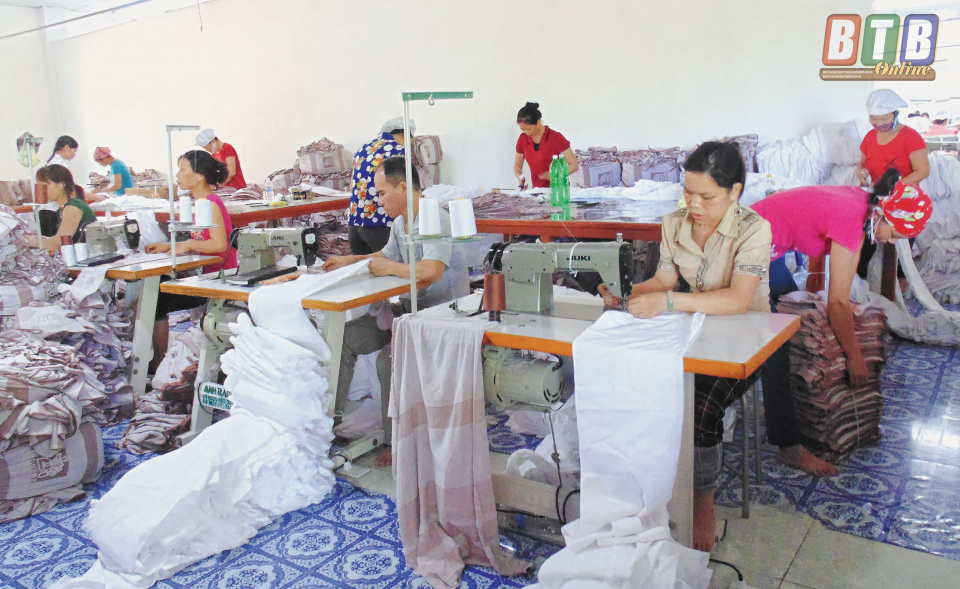 Cơ sở may Quý Khang (xã Thụy Dân, huyện Thái Thụy) tạo việc làm cho hàng trăm lao động.