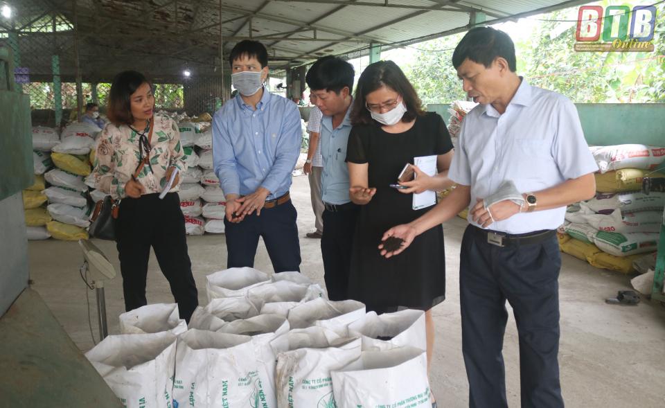Đại diện Văn phòng Điều phối nông thôn mới Trung ương khảo sát thực tế tại nhà máy xử lý rác thải thị trấn Quỳnh Côi (Quỳnh Phụ).