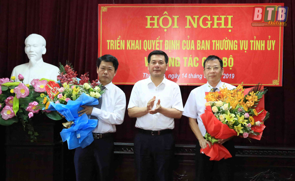 Tại hội nghị, đồng chí Đỗ Xuân Thành, Ủy viên Ban Thường vụ, Trưởng ban Tổ chức Tỉnh ủy đã công bố các quyết định của Ban Thường vụ Tỉnh ủy về việc điều động đồng chí Đinh Vĩnh Thụy, Phó Bí thư Huyện ủy, Chủ tịch UBND huyện Vũ Thư đến nhận công tác tại Đảng ủy Khối các cơ quan tỉnh, chỉ định tham gia Ban Chấp hành Đảng bộ, Ban Thường vụ Đảng ủy và giữ chức Bí thư Đảng ủy Khối các cơ quan tỉnh nhiệm kỳ 2015 – 2020; tiếp nhận và luân chuyển đồng chí Đặng Hồng Kỳ, Phó Cục trưởng Cục thuế tỉnh về công tác tại UBND huyện Vũ Thư, chỉ định tham gia Ban Chấp hành Đảng bộ huyện, Ban Thường vụ Huyện ủy và giữ chức Phó Bí thư Huyện ủy Vũ Thư nhiệm kỳ 2015 – 2020, giới thiệu để HĐND huyện bầu giữ chức Chủ tịch UBND huyện nhiệm kỳ 2016 – 2021; điều động đồng chí Trần Hữu Nam, Phó Bí thư thường trực Thành ủy Thái Bình đến nhận công tác tại Đảng ủy Khối Doanh nghiệp tỉnh, chỉ định tham gia Ban Chấp hành Đảng bộ, Ban Thường vụ Đảng ủy và giữ chức Bí thư Đảng ủy Khối Doanh nghiệp tỉnh nhiệm kỳ 2015 - 2020; điều động đồng chí Hoàng Văn Thành, Tỉnh ủy viên, Giám đốc Sở Xây dựng đến nhận công tác tại Thành ủy Thái Bình, chỉ định tham gia Ban Chấp hành Đảng bộ thành phố, Ban Thường vụ Thành ủy và giữ chức Phó Bí thư thường trực Thành ủy Thái Bình nhiệm kỳ 2015 - 2020.
