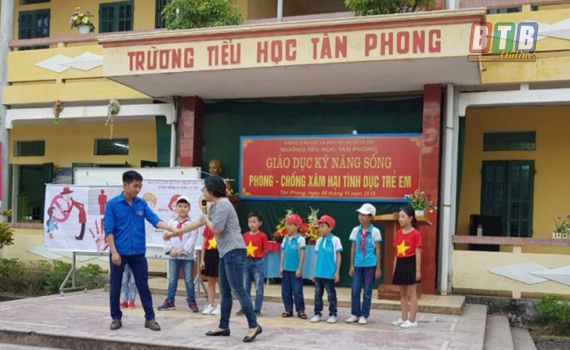 Cán bộ dân số hướng dẫn kỹ năng phòng chóng xâm hại tình dục trẻ em cho các em học sinh