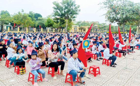 Học sinh Trường Tiểu học Đông Phương (Đông Hưng) tham gia buổi truyền thông chăm sóc sức khỏe sinh sản, phòng tránh xâm hại trẻ em.
