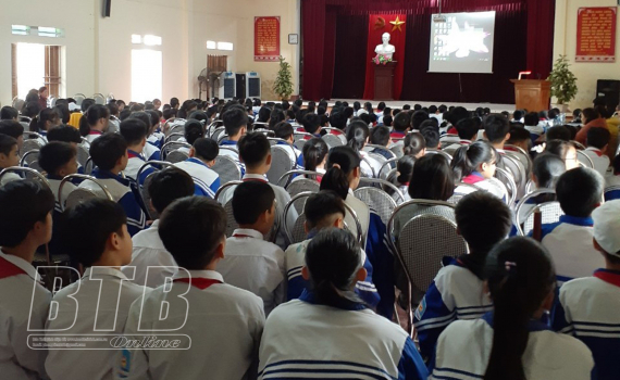 Đông đảo các em học sinh tham gia buổi truyền thông tại Trường THCS Minh Lãng.