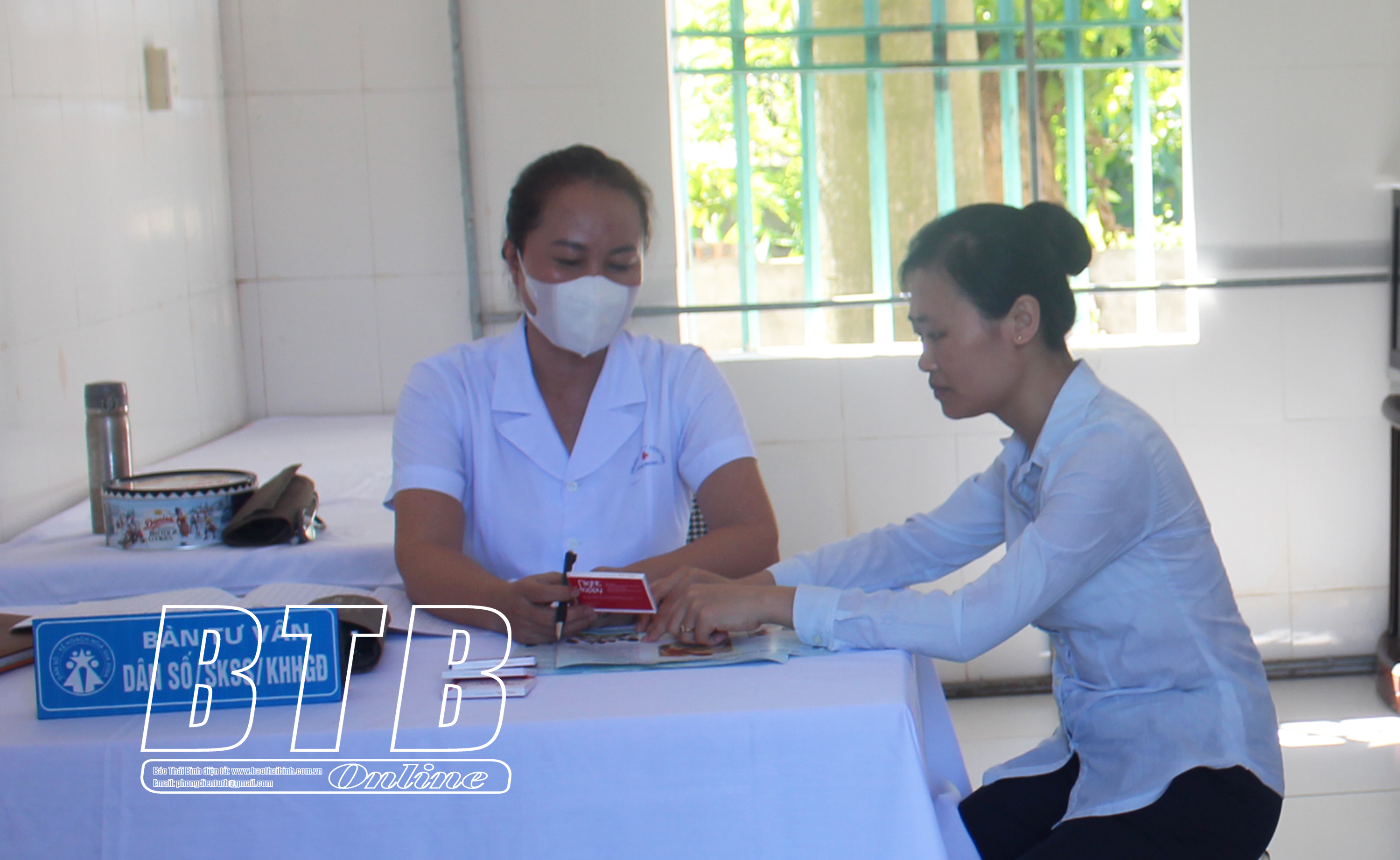 Cán bộ y tế tư vấn về tầm quan trọng của việc chăm sóc sức khỏe sinh sản.