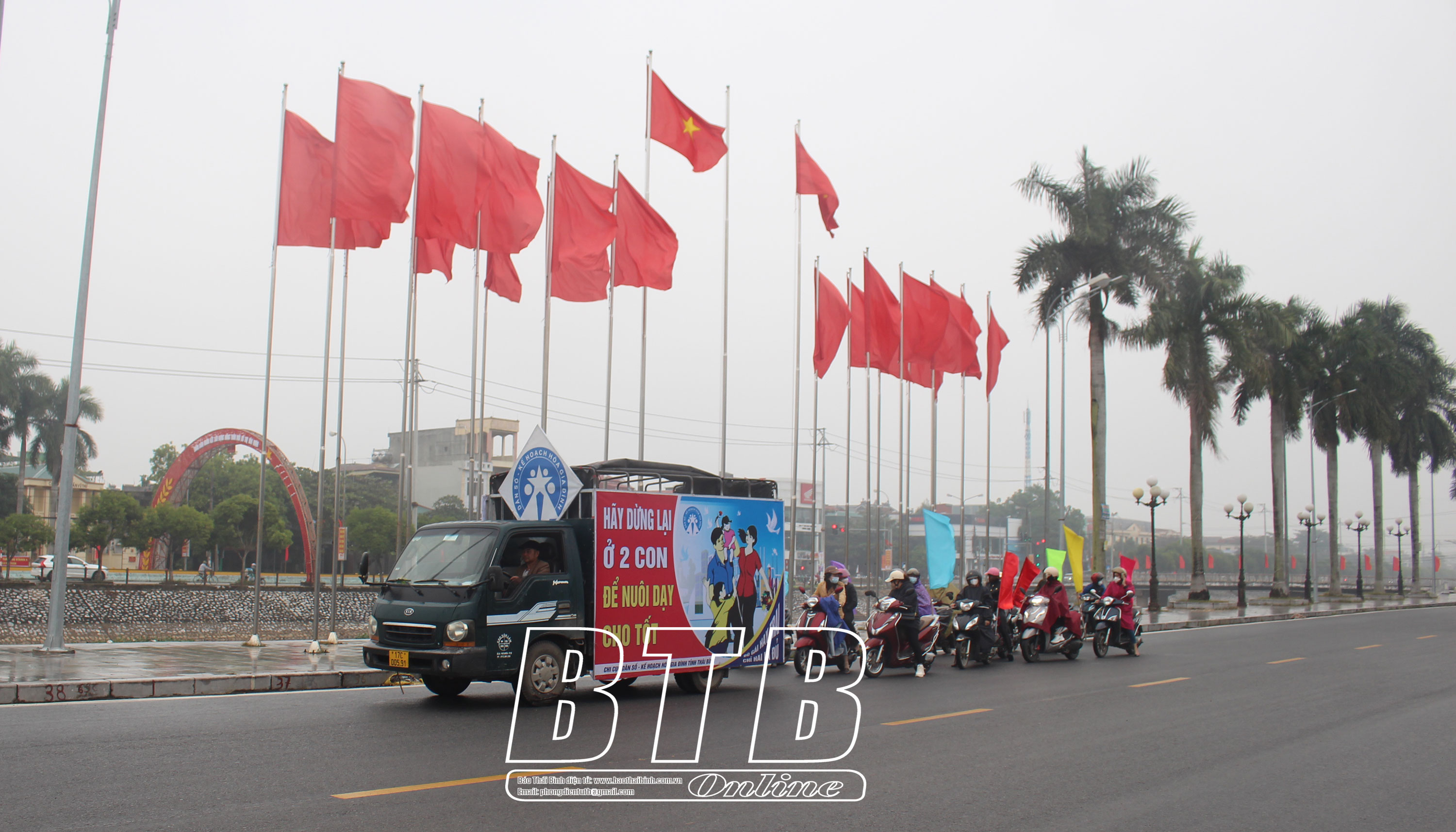 Xe diễu hành tuyên truyền, cổ động về công tác dân số - kế hoạch hóa gia đình tại huyện Vũ Thư.