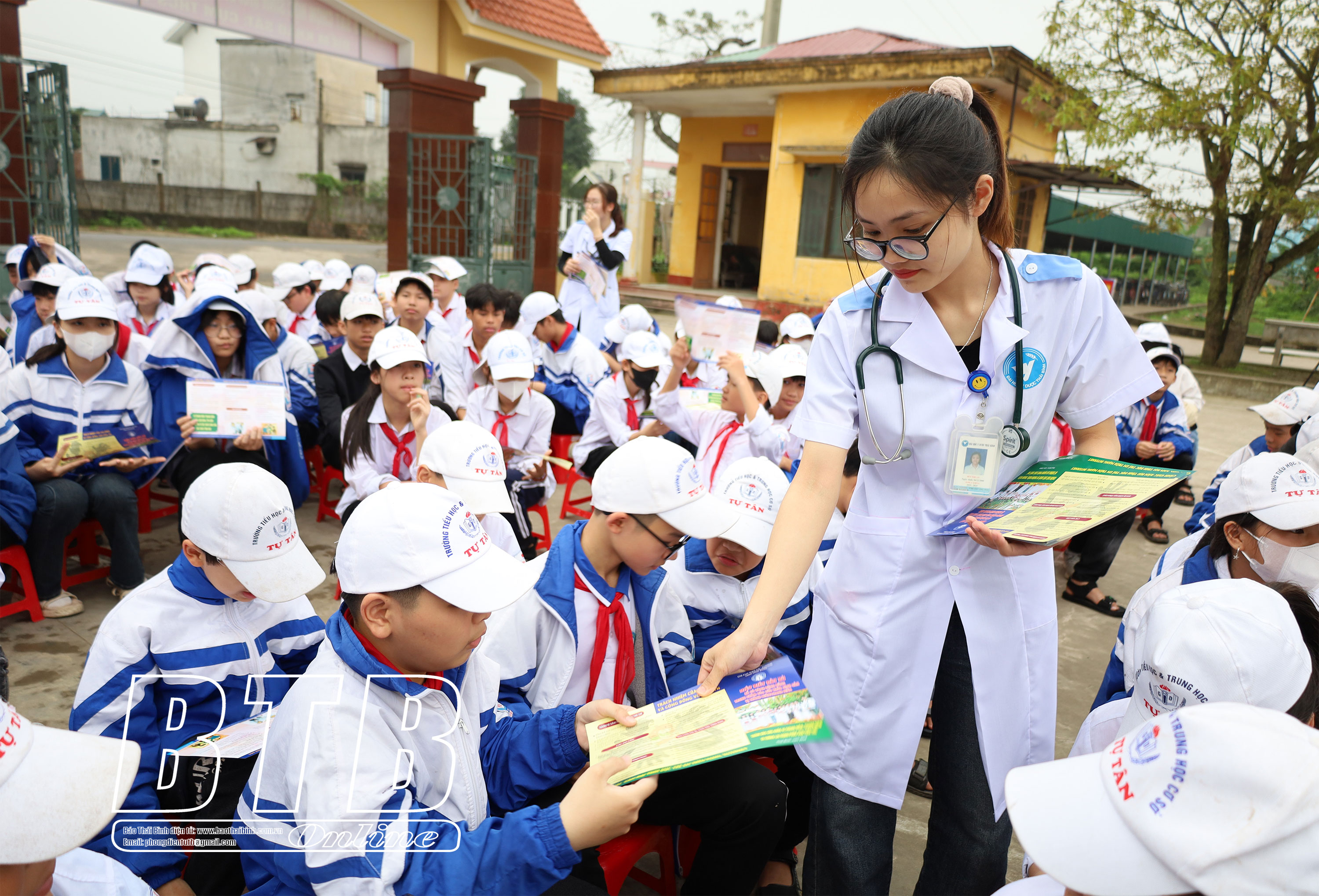 Học sinh Trường Tiểu học và THCS Tự Tân (Vũ Thư) được truyền thông về chăm sóc sức khỏe sinh sản vị thành niên, thanh niên.
