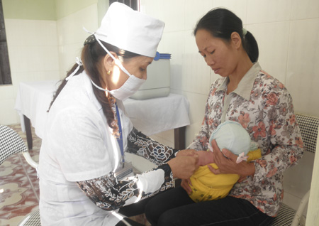 Tiêm chủng mở rộng cho trẻ em tại Trạm Y tế xã Thượng Hiền (Kiến Xương).