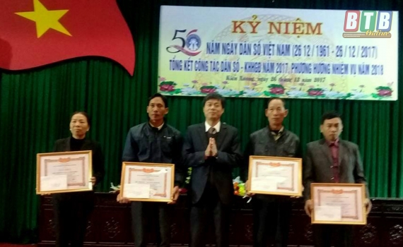 Nhân dịp này, 8 tập thể, 7 cá nhân tiêu biểu làm tốt công tác Dân số - KHHGĐ và 4 thôn, khu, tổ dân phố 3 năm liền không có người sinh con thứ ba trở lên đã được UBND huyện biểu dương, khen thưởng. 1 thôn 5 năm liền không có người sinh con thứ ba trở lên được đề nghị UBND tỉnh khen thưởng.