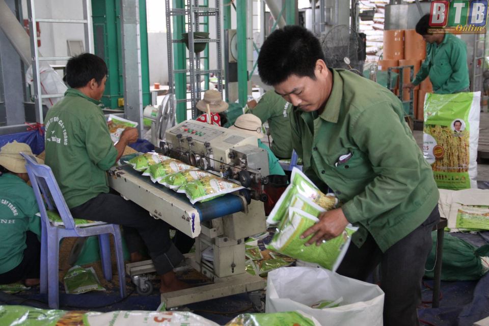 Đóng gói sản phẩm gạo tại ThaiBinh Seed.