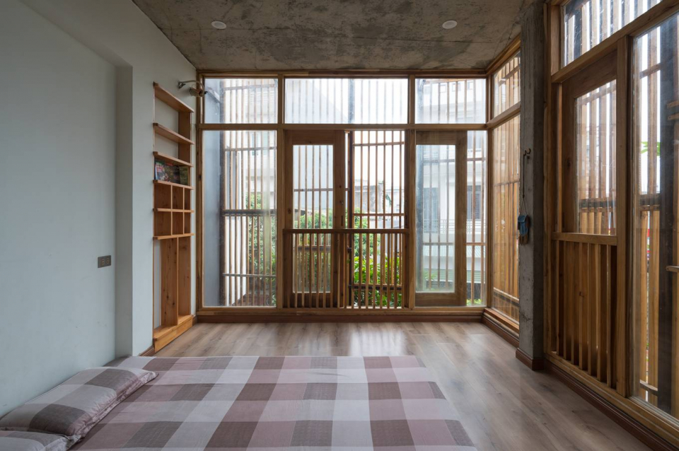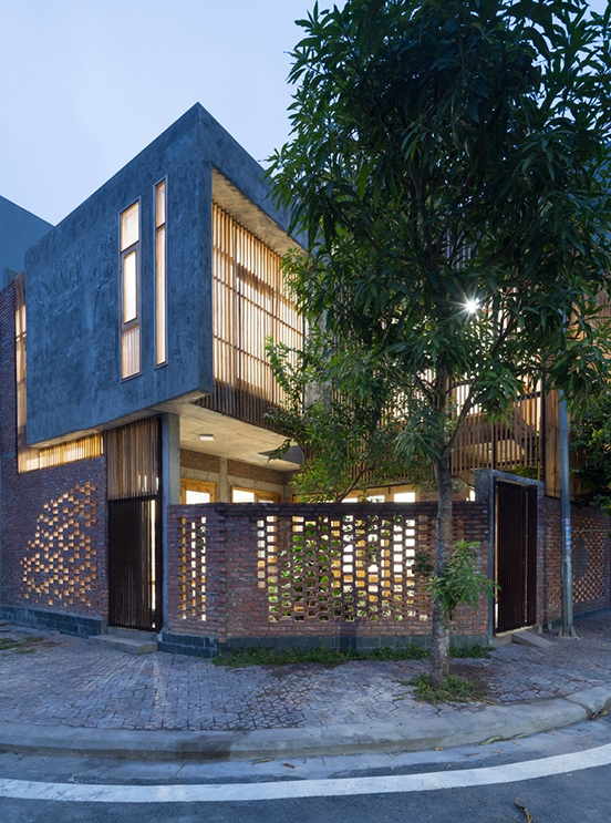 Đây cũng là nơi sinh sống của gia đình kiến trúc sư Vũ Văn Khiêm (Iday Design). Với bề ngoài khác biệt: tường gạch mộc, lam gỗ và bê tông để thô, ngôi nhà mang đậm dấu ấn cá nhân của người thiết kế kiêm gia chủ.