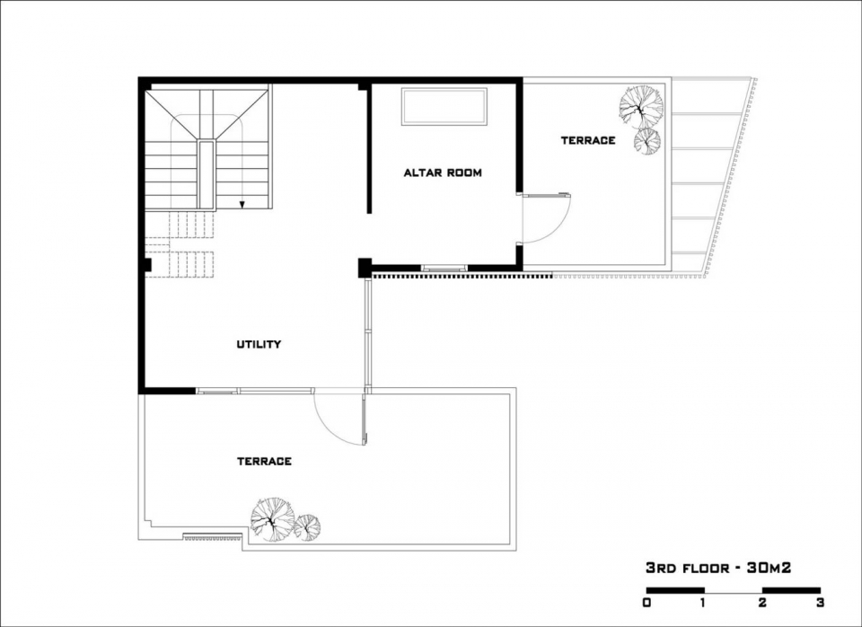 Tầng ba chủ yếu là khu vực thờ tự và giặt phơi, diện tích xây nhà thu hẹp còn 30m2.