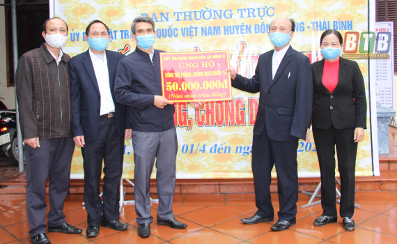Cựu chiến binh Nhâm Gia Minh trao kinh phí ủng hộ công tác phòng, chống dịch Covid-19 cho Ủy ban MTTQ huyện Đông Hưng.