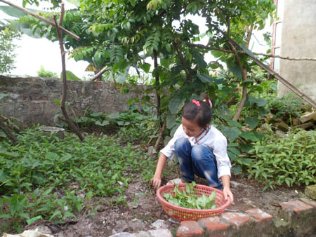 Ngoài giờ học Hoàng Thị Tuyết Linh còn chăm chỉ giúp đỡ gia đình việc nhà.