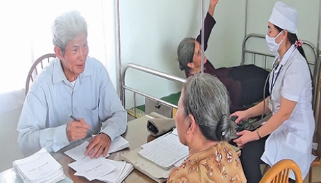 Không chỉ có tập thể dục, để chăm lo sức khỏe cho người cao tuổi, ông Trịnh còn tổ chức cho hội viên tập dưỡng sinh, phối hợp với Trạm Y tế xã tổ chức thăm khám sức khỏe, tư vấn cách chăm sóc, phòng bệnh cho các cụ. Định kỳ mỗi năm 2 lần tổ chức khám sức khỏe, các cụ biết được tình trạng sức khỏe của mình, kịp thời phát hiện một số bệnh thường gặp ở người cao tuổi liên quan đến tim mạch, huyết áp, hô hấp, xương khớp, mắt, hệ tiết niệu... Để theo dõi tình hình sức khỏe của người cao tuổi, ông Trịnh còn in riêng một quyển sổ khám với các danh mục khám cụ thể phát tận tay cho các cụ. Nhờ đó, việc theo dõi sức khỏe và bệnh tật của các cụ được thuận lợi hơn, giúp cán bộ y tế xã chủ động tư vấn và điều trị cho các cụ. Ông cũng tích cực đi vận động xin kinh phí để cấp thuốc miễn phí cho các cụ chưa có thẻ BHYT. Bà Hoàng Thị Lụa ở thôn Trung chia sẻ: Vì tuổi cao nên chúng tôi ít có điều kiện đi khám ở tuyến huyện và tỉnh. Việc phát hiện bệnh sớm và điều trị là rất quan trọng. Được khám sức khỏe và phát hiện bệnh ngay ở địa phương, chúng tôi thấy hữu ích lắm. Còn ông Lê Xuân Lạc cho biết: Với người già chúng tôi thì dễ phát sinh nhiều bệnh lắm. Việc làm của ông Trịnh giúp người cao tuổi kiểm tra sức khỏe và tư vấn cách phòng bệnh, thật là đáng quý.