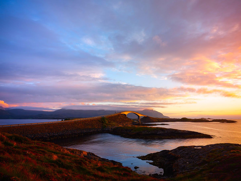 Đường Đại Tây Dương (Na Uy) được xây dựng trên các hòn đảo nhỏ và đảo đá ngầm, kết nối với nhau bằng nhiều con đường đắp cao, cầu cạn.
