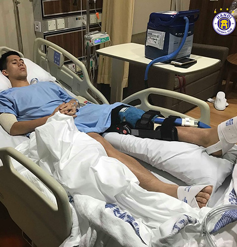 Đình Trọng phẫu thuật thành công dây chằng gối ở Singapore - Ảnh: Hà Nội FC