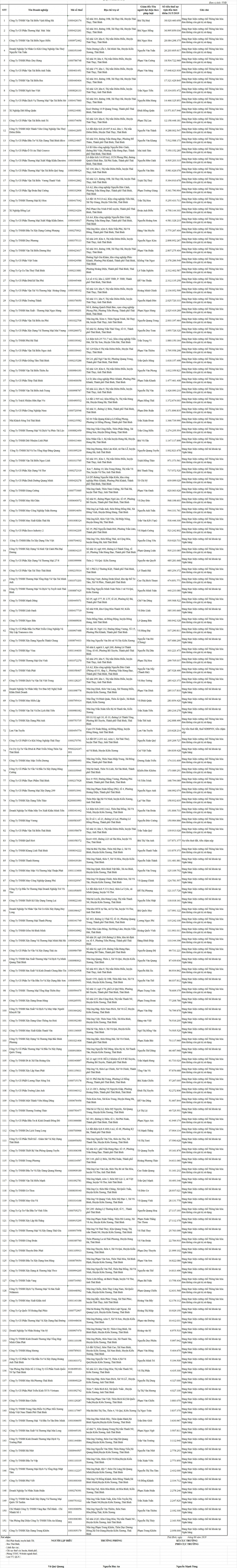 Danh sách các doanh nghiệp và cá nhân nợ thuế đợt 6 năm 2019