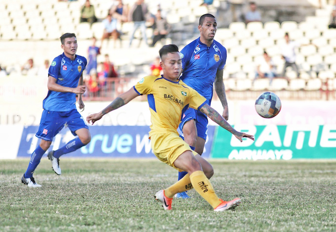 Bước vào trận đấu, đội bóng xứ Quảng đã chơi khá thụ động và gần như nhường hẳn thế trận cho chủ nhà SLNA. Bên cạnh đó, nắng nóng gay gắt trên sân Vinh cũng là một thử thách không nhỏ đối với cầu thủ hai đội.
