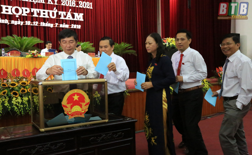 Các đại biểu bỏ phiếu bầu Phó Chủ tịch UBND tỉnh khóa XVI, nhiệm kỳ 2016 - 2021.