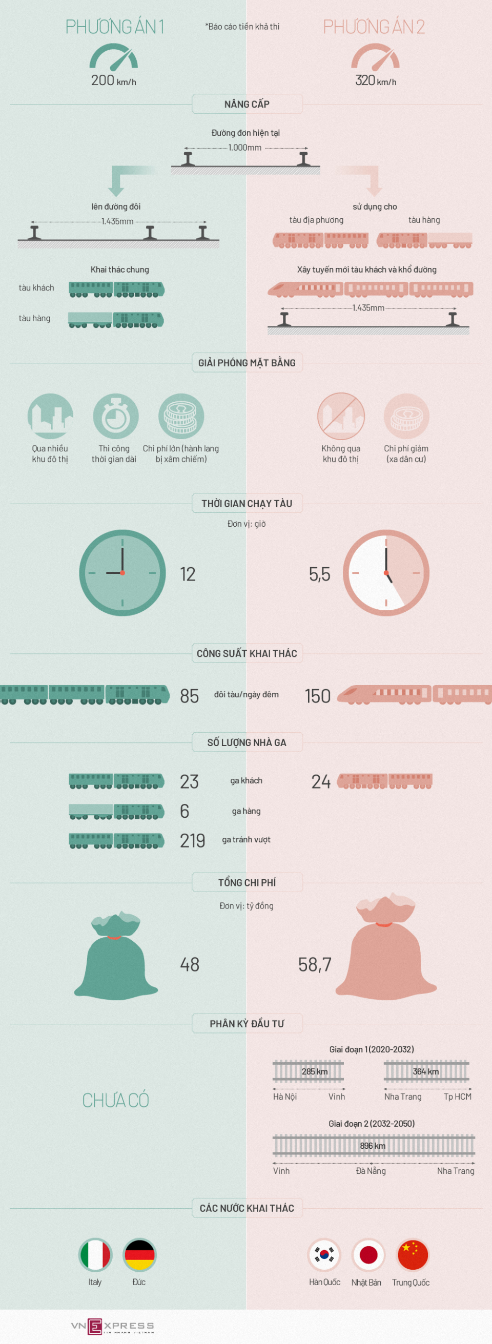 Hai phương án đường sắt tốc độ cao của Bộ Giao thông Vận tải