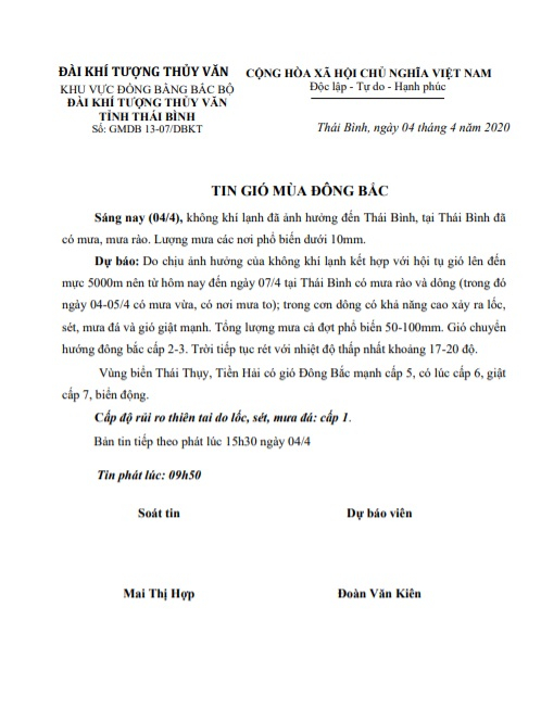 - Tin không khí lạnh tăng cường và rét tỉnh Thái Bình 26.12.2024 | 16:37 PM