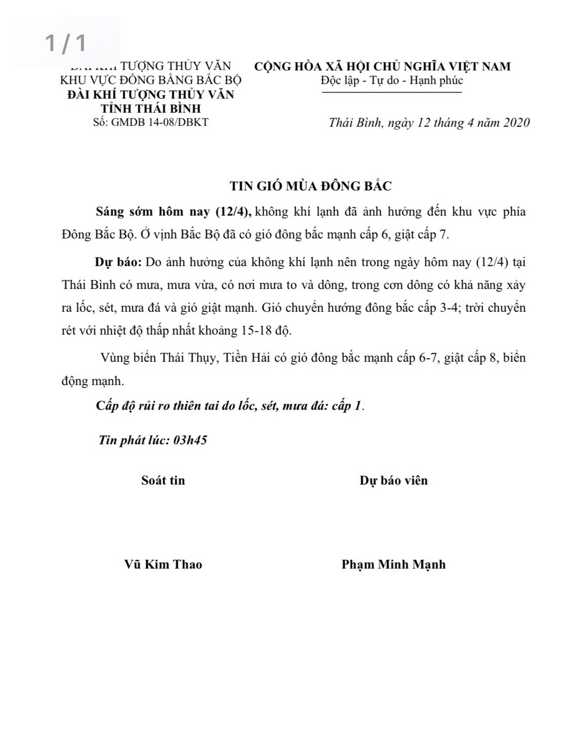 - Tin không khí lạnh tăng cường và rét tỉnh Thái Bình 26.12.2024 | 16:37 PM