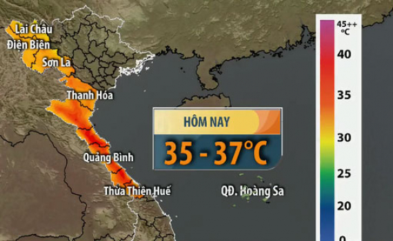 Hôm nay nắng nóng sẽ xuất hiện ở khu vực Lai Châu, Điện Biên, Sơn La và các tỉnh từ Thanh Hóa đến Thừa Thiên – Huế với nền nhiệt độ cao nhất 35 - 37 độ.