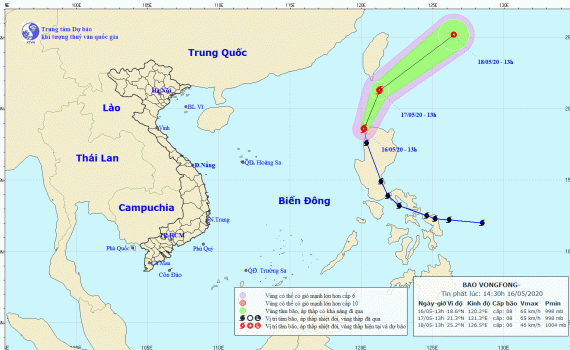 Hồi 13 giờ ngày 16/5, vị trí tâm bão ở vào khoảng 18,6 độ Vĩ Bắc; 120,2 độ Kinh Đông, trên khu vực phía Tây Bắc đảo Lu-dông (Phi-líp-pin). Sức gió mạnh nhất vùng gần tâm bão mạnh cấp 8 (60-75km/giờ), giật cấp 10.