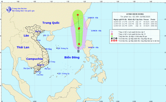 Dự báo trong 24 giờ tới, áp thấp nhiệt đới di chuyển theo hướng Bắc, mỗi giờ đi được 20-25km và có khả năng mạnh lên thành bão. Đến 01 giờ ngày 11/8, vị trí tâm bão ở khoảng 22,2 độ Vĩ Bắc; 118,4 độ Kinh Đông, cách Đài Loan 200km về phía Tây Nam. Sức gió mạnh nhất vùng gần tâm bão mạnh cấp 8 (60-75km/giờ), giật cấp 10.