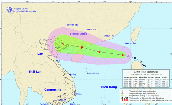 Trong 24 đến 48 giờ tiếp theo, bão di chuyển theo hướng Tây Tây Bắc, mỗi giờ đi được 15-20km và có khả năng mạnh thêm. Đến 01 giờ ngày 20/8, vị trí tâm bão ở khoảng 21,3 độ Vĩ Bắc; 110,6 độ Kinh Đông, trên bán đảo Lôi Châu (Trung Quốc). Sức gió mạnh nhất vùng gần tâm bão mạnh cấp 8-9 (60-90km/giờ), giật cấp 11.