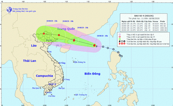 Dự báo trong 24 giờ tới, bão di chuyển theo hướng Tây Tây Bắc, mỗi giờ đi được khoảng 20km và có khả năng mạnh thêm. Đến 10 giờ ngày 19/8, vị trí tâm bão ở khoảng 21,3 độ Vĩ Bắc; 111,8 độ Kinh Đông, ngay trên vùng biển phía Nam tỉnh Quảng Đông (Trung Quốc).Sức gió mạnh nhất vùng gần tâm bão mạnh cấp 9(75-90km/giờ),giật cấp 11.