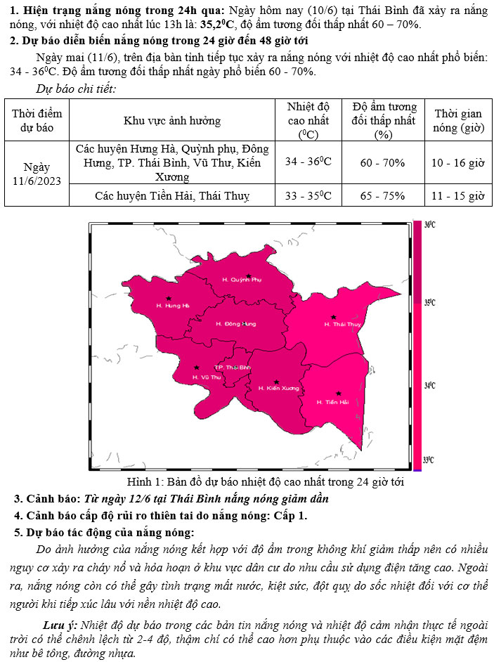 Tin dự báo nắng nóng khu vực tỉnh Thái Bình
