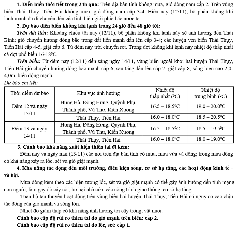 Theo Đài KTTV Thái Bình