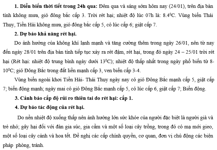 - Tin không khí lạnh tăng cường và rét tỉnh Thái Bình 26.12.2024 | 16:37 PM