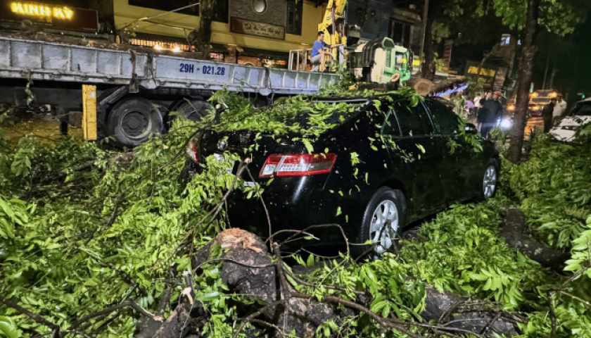 Mưa dông gây đổ cây ở Hà Nội hôm 20/4.