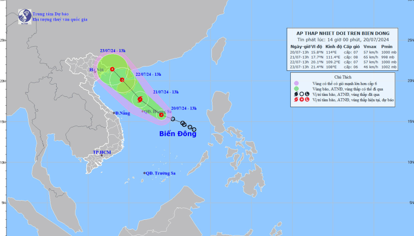Vị trí và đường đi của áp thấp nhiệt đới.