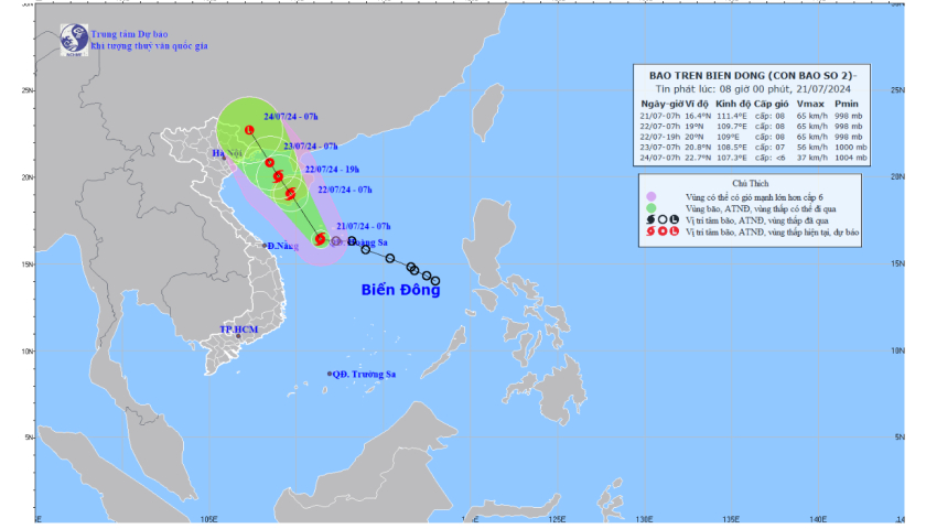 Sáng nay (21/7), áp thấp nhiệt đới trên vùng biển quần đảo Hoàng Sa đã mạnh lên thành bão, cơn bão số 2 năm 2024.