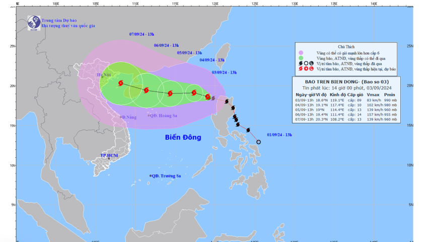- Tin bão trên biển Đông (Cơn bão số 3) 04.09.2024 | 07:32 AM