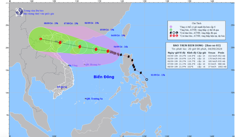 - Tin bão trên biển Đông (Cơn bão số 3) 04.09.2024 | 07:32 AM