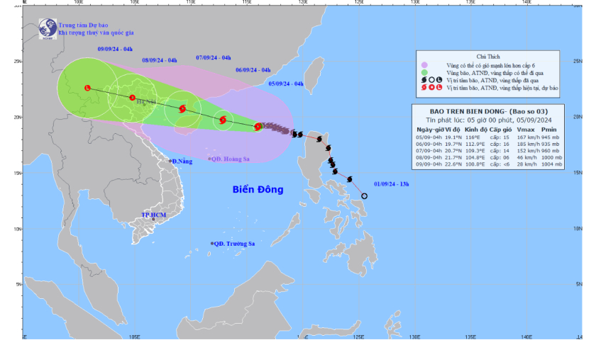 - Tin bão trên biển Đông (Cơn bão số 3) 04.09.2024 | 07:32 AM