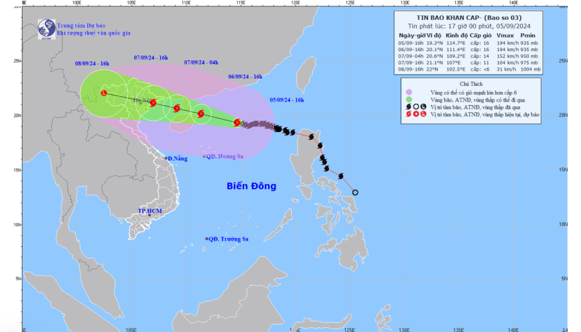 - Tin bão trên biển Đông (Cơn bão số 3) 04.09.2024 | 07:32 AM