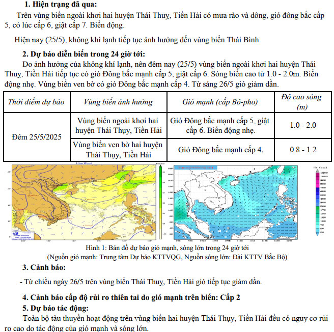 Tin gió mạnh trên vùng biển tỉnh Thái Bình